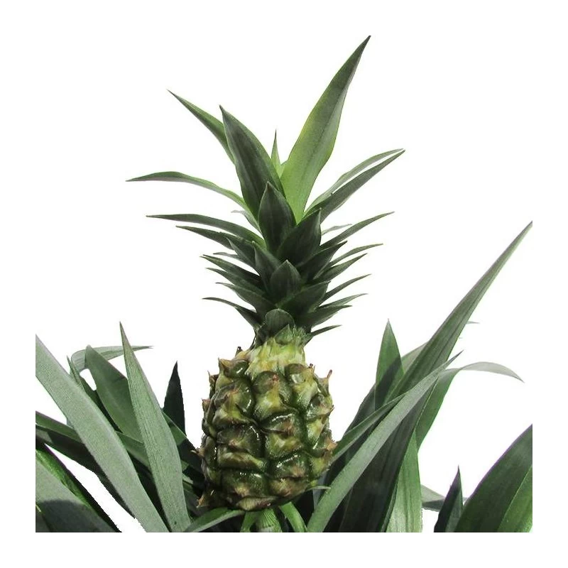 La ananás tiene hojas en forma de espada, de color verde grisáceo, el tallo florífero es corto, robusto, cubierto de pequeñas brácteas rosadas.