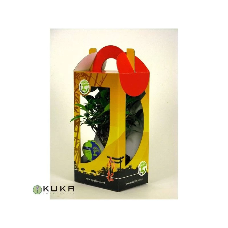 Bonsái con plato de cerámica y caja, ideal para regalo, variedad de interior.