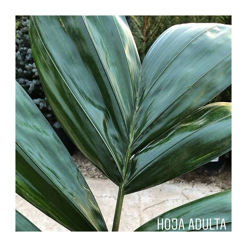 Es una palmera decorativa con un solo tronco que puede llegar a alcanzar los 20 metros de altura y hasta casi 30 centímetros de diámetro.