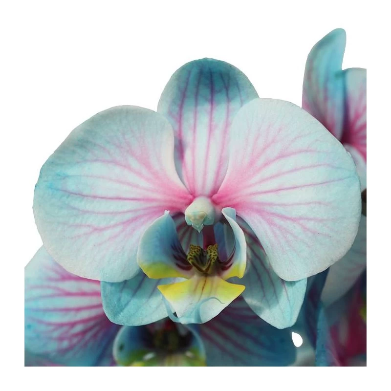 La orquídea wond of nature es de espectaculares flores azules con nervios rosa, tintadas en la parte inferior del tallo.