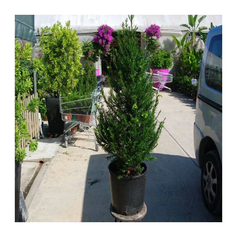 Conifera de hojas aciculares estrechas, aplanadas de color verde oscuro brillante por el haz y más claro por en envés.