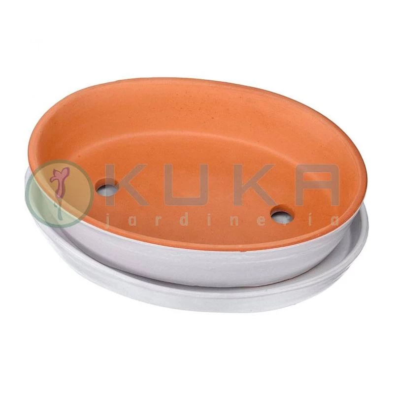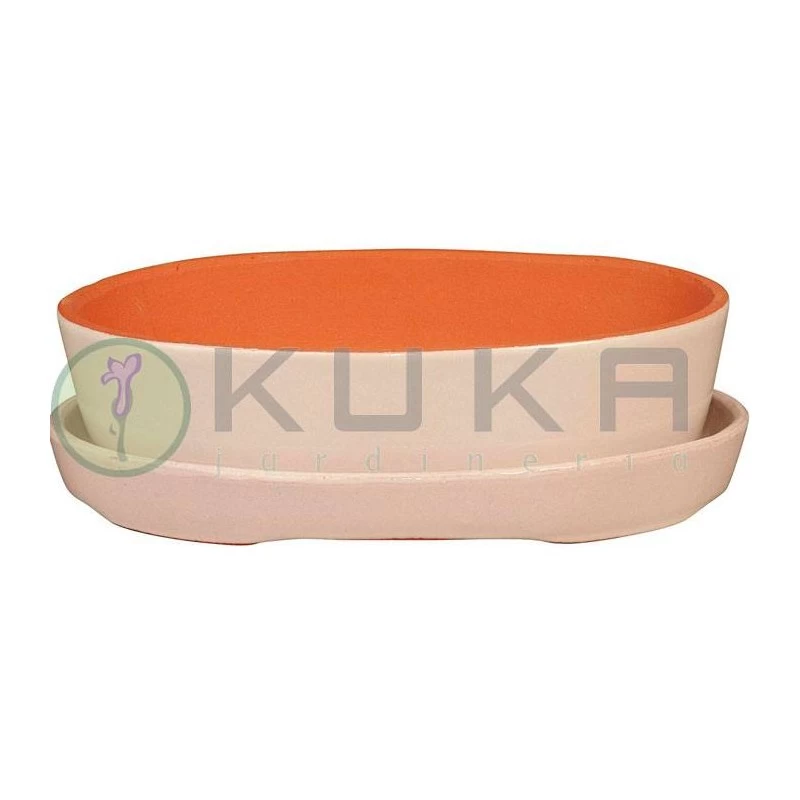 Maceta de terracota esmaltado con pigmentos naturales típicos de la región y trabajados manualmente con moldes de yeso y cocidos en hornos tradicionals.