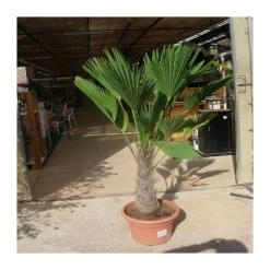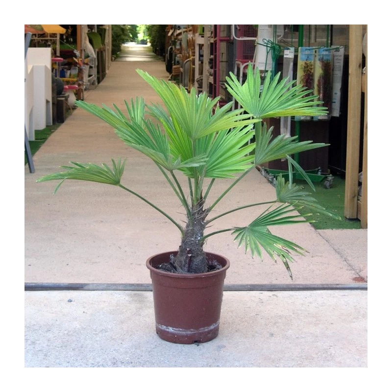 Trachycarpus de crecimiento muy lento y muy resistente a las heladas. Es muy ornamental e indicada para tiesto y jardines pequeños.