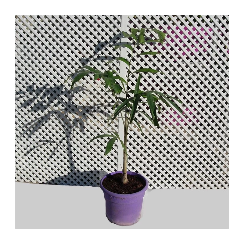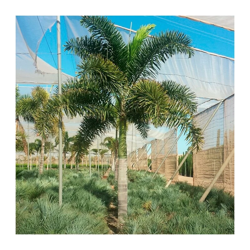 Palmera inerme, tronco grisáceo, columnar, o levemente hinchado en forma de botella.